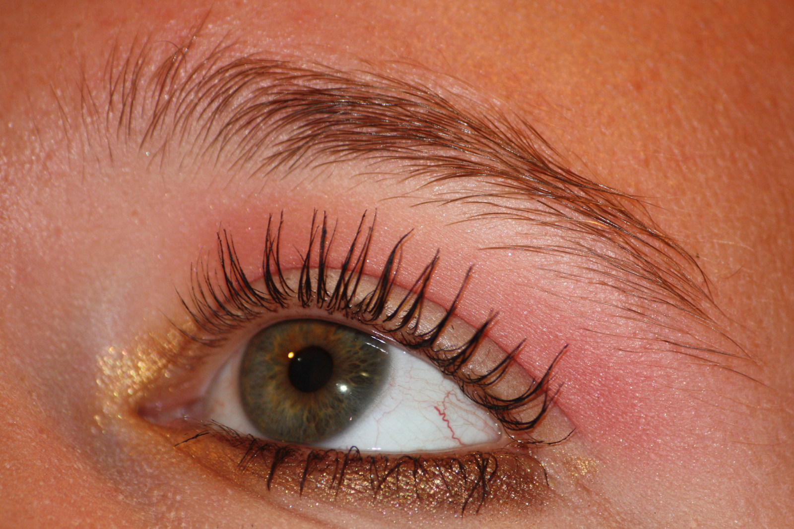EYESHADOWS: I used the wonderful 12 Beautiful Color Eye Shadows Palette by Elizabeth Arden. The brown underneath, over the gold eyepencil and the pink blended along the socket-line;